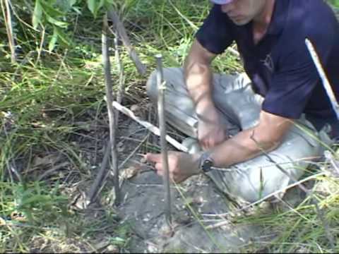 Learn a basic t-bar snare for catching small game like rabbits, small pigs and other animals for survival in this short video.